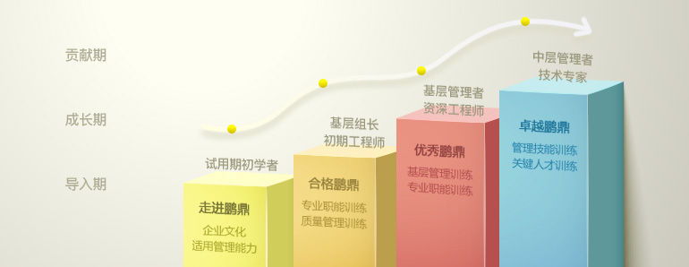 在鹏鼎可以根据个人职业兴趣与专长, 选择管理职或专业技术职双轨发展晋升通道;